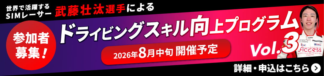タイムアタック、対戦、レースはもちろん、F1、スーパーGT、ドリフト、ジムカーナなども体験できます。単独走行でスキルアップの他、2機設置により同時対戦も可能!