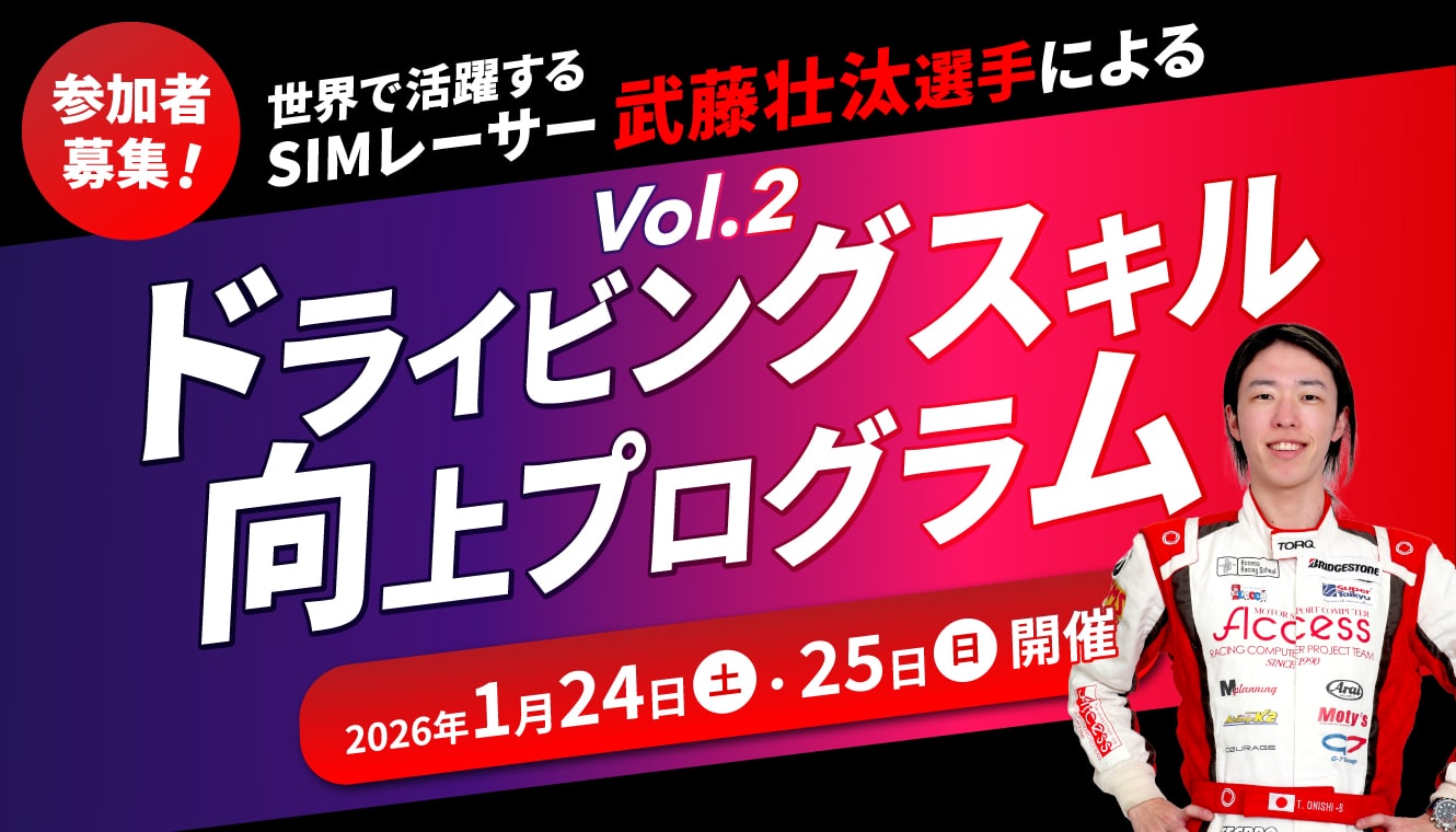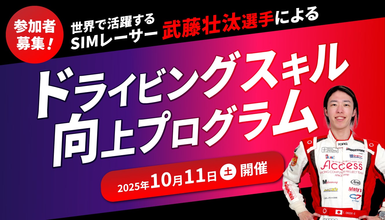 【参加者募集!】世界で活躍するSIMレーサー武藤壮汰選手によるドライビングスキル向上プログラム Vol.2開催!