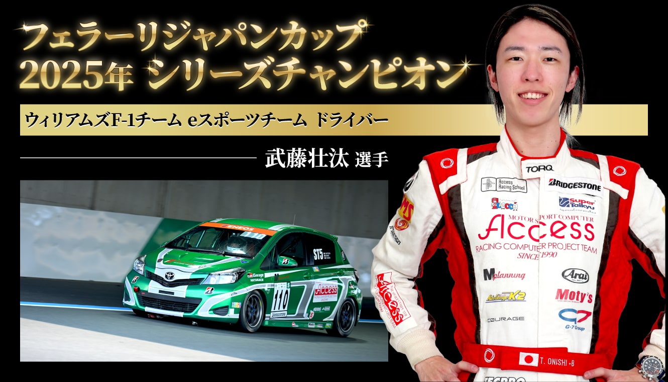 フェラーリジャパンカップ2025年 シリーズチャンピオン、ウィリアムズF-1チーム eスポーツドライバーである武藤壮汰選手が、自身のドライビング理論をまとめた “Sota Muto ドライビングスキル 向上プログラム”を開催いたします。